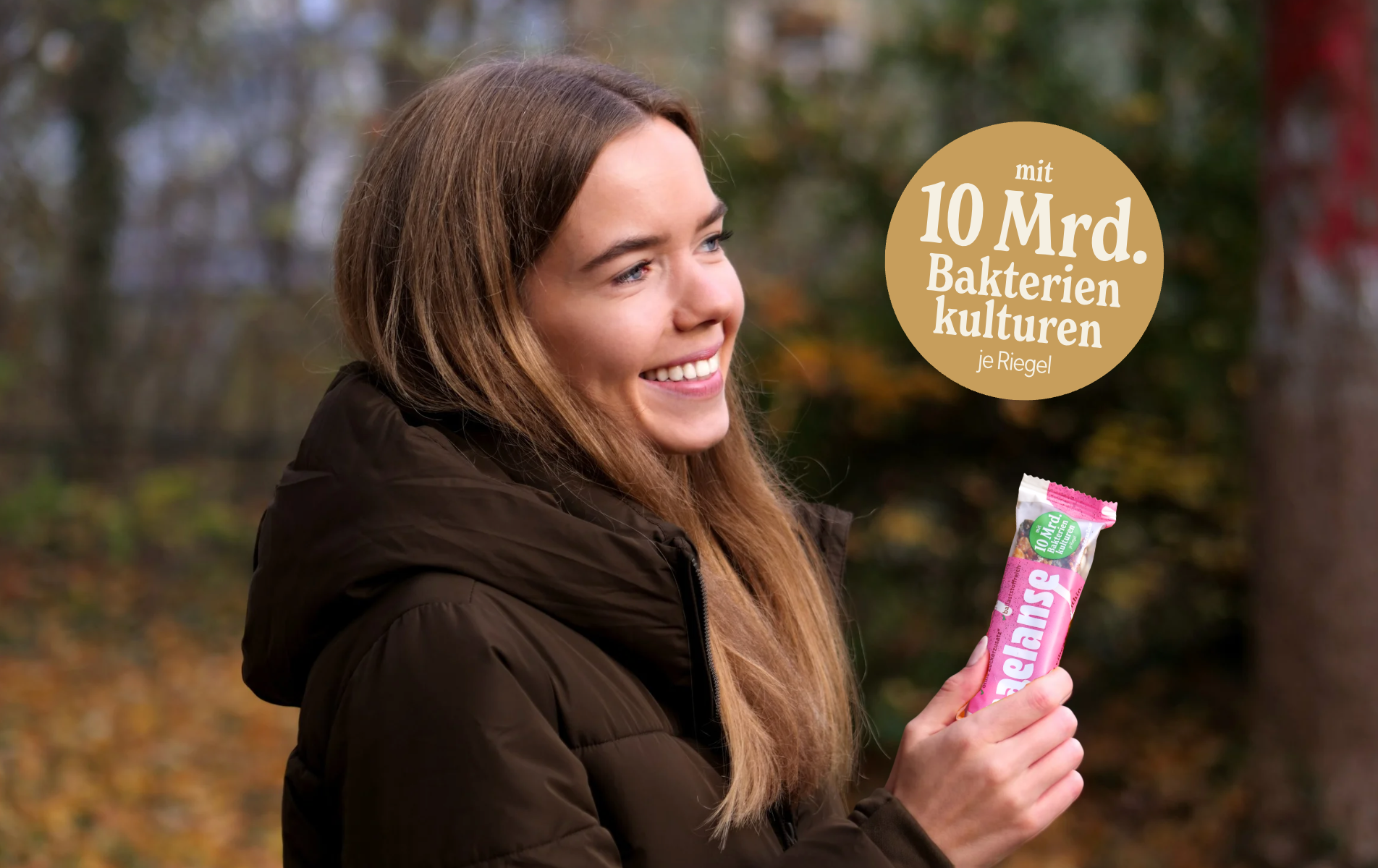 Das heißt: es sind nützliche Bakterienkulturen enthalten, die deine Darmflora gezielt unterstützen. In jedem baelanse bar stecken über 10 Milliarden davon - darunter Laktobazillen und Bifidobakterien, zwei der wichtigsten Gattungen für dein Darmmikrobiom.