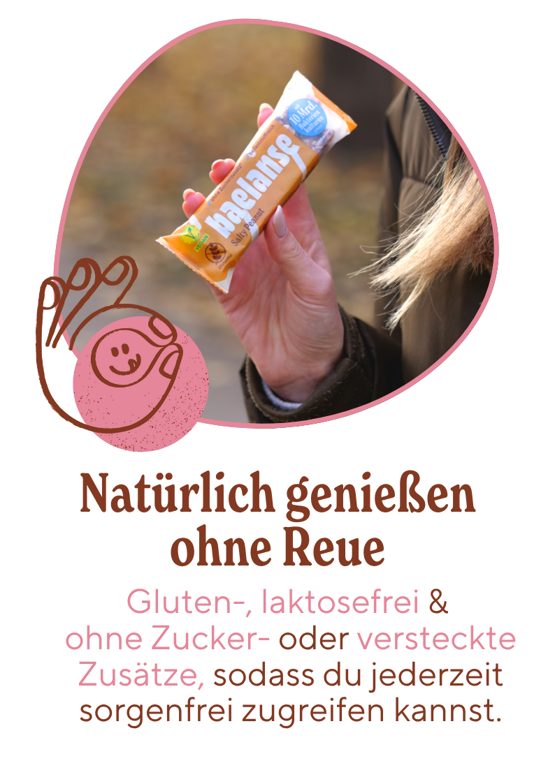 Jeder Riegel schmeckt herrlich nussig und die enthaltenen Bakterienkulturen sind dabei vollkommen geschmacksneutral.